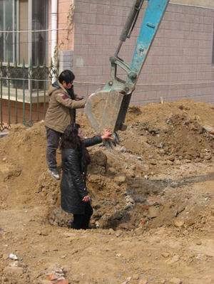 可聞訊趕到的施工方負(fù)責(zé)人厲聲拒絕了她的要求,堅持讓挖掘機(jī)繼續(xù)開挖,聲稱他們租賃挖掘機(jī)的費用是200元/小時,若采用人工挖掘至少要3個小時,不僅耗時長效率低,還要照樣支付租賃費。在施工方負(fù)責(zé)人的嚴(yán)令下,挖掘機(jī)重新開動,張牙舞爪地晃動著巨大的鏟子緩緩前行。