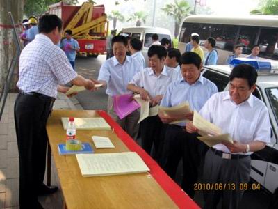 在漯河市人民政府組織的“安全生產(chǎn)月”宣傳周活動(dòng)上,漯河市人民政府副市長曹存正先生、漯河市政協(xié)副主席劉運(yùn)杰先生正在咨詢臺前閱讀安全用氣宣傳資料,就用氣安全宣傳工作進(jìn)行指導(dǎo)。
